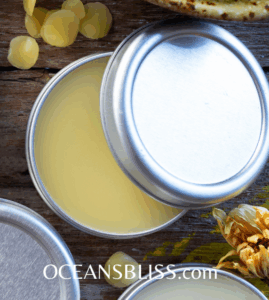 Welcome to Oceans Bliss Portal! Let’s dive into a seasonal remedy I always keep on hand. I store mine in a small tin in the fridge, and I often pour a few into lip chap tubes to keep in my purse or to use on feet before putting on socks.