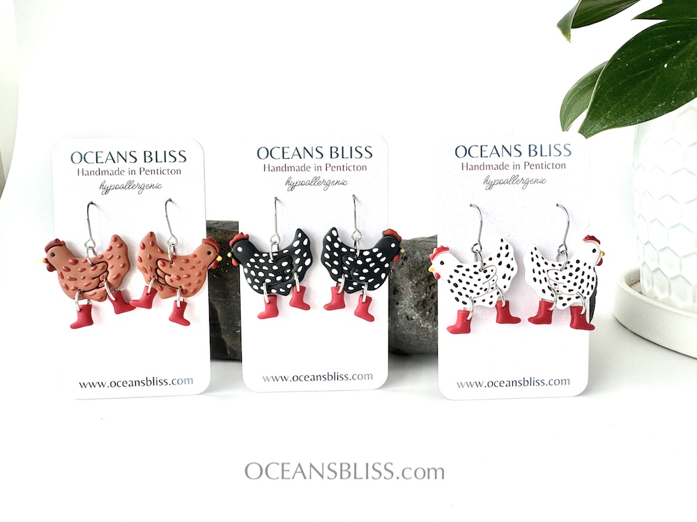 Chickens with boots, honey, jam...just like any farm stand but make it earrings!